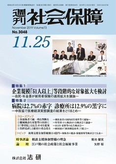 - 経団連は11月19日、提言「経済成長・財政・社会保障の一体改革による安心の確保に向けて」を公表。社会保障制度改革で優先的に取り組むべき事項として、今後75歳に到達した者を対象に窓口の2割負担の継続、受診時定額負担の導入等をあげる(P.17)