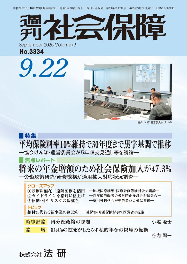 ▼協会けんぽは9月10日、運営委員会を開き、2026〜30年度の収支見通しを基に議論。協会けんぽの実績を踏まえた試算では、平均保険料率10%に据え置いた場合、いずれのケースでも30年度まで単年度収支は黒字基調で推移し、準備金残高は法定準備金の8.4〜9.3か月分の水準に達する。このほか、協会けんぽDXの一環として「けんぽアプリ」を2026年1月にリリースすること等を説明(P.6)