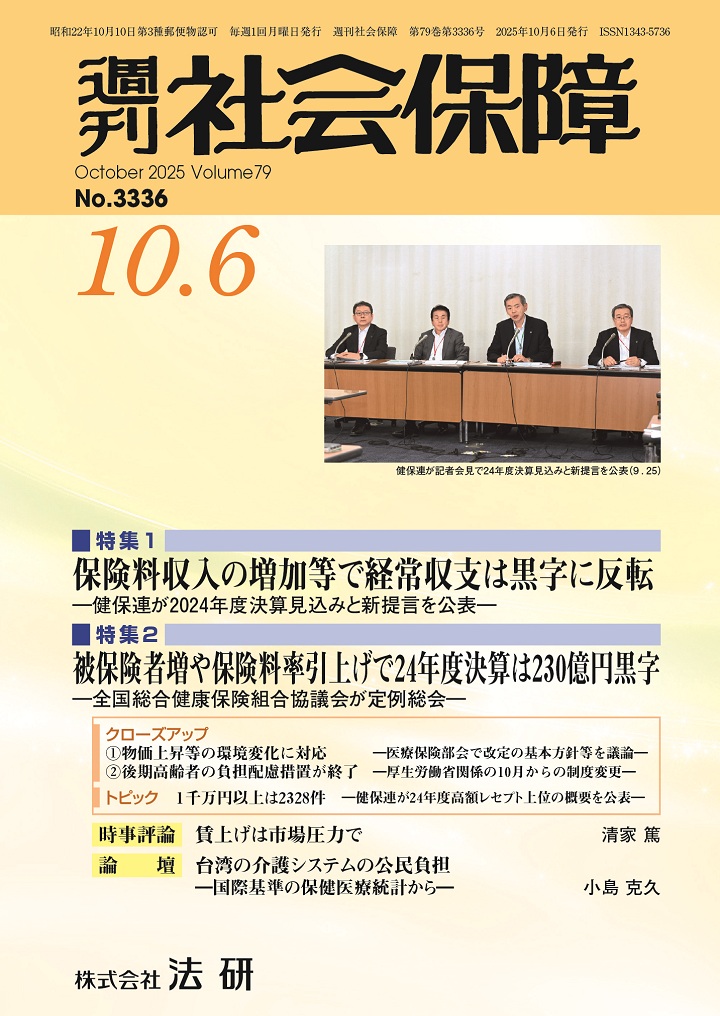 ▼全総協は9月24日、定例総会を開き、2024年度事業報告案及び収入支出決算案等を了承。全総協会員243組合の24年度決算概要をみると、経常収支差は230億円の黒字に。鈴木一行会長は、「被保険者1人当たりにすると3千円程度に過ぎず、とても経営環境が改善したという状況ではない」と指摘(P.38)