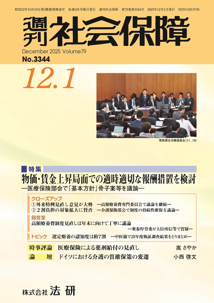 ▼社保審・医療保険部会は11月20日、OTC類似薬の保険給付の在り方について患者団体からヒアリングを行うとともに、出産に対する支援の強化、2026年度診療報酬改定の「基本方針」(骨子案)について議論。OTC類似薬の保険給付見直しについて患者団体は保険適用除外に反対(P.6)