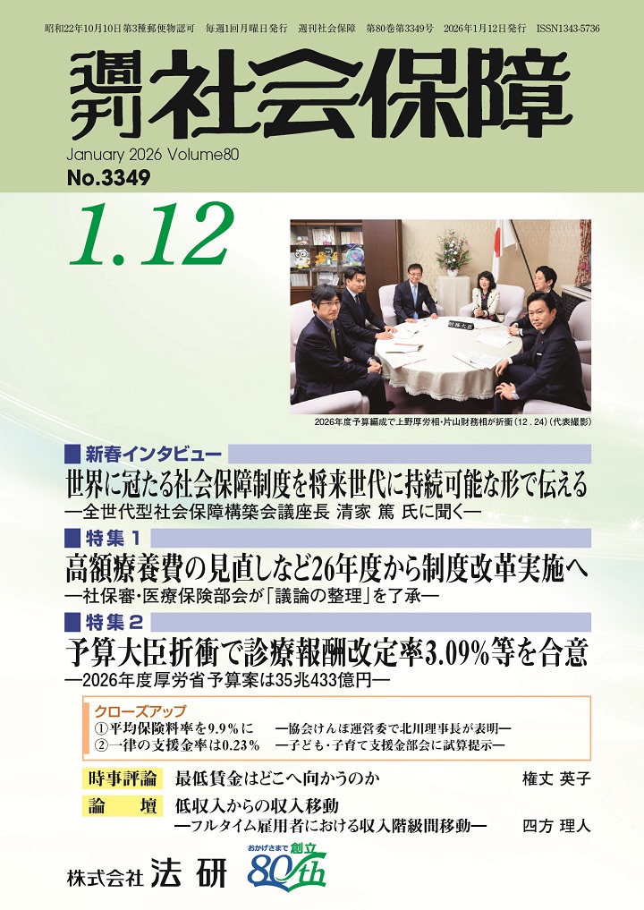 ▼協会けんぽは12月23日、運営委員会を開き、2026年度平均保険料率を議論。北川理事長は議論等を踏まえ、「皆様のご意見や状況を総合的に判断し、0.1%の引下げを行い9.9%にすることとしたい」と表明(P.20)