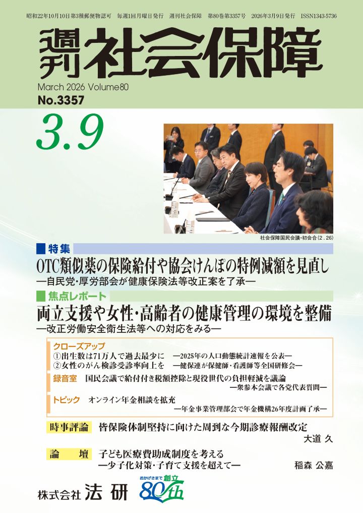 ▼社会保障国民会議は2月26日、「給付付き税額控除」や「食料品の消費税率ゼロ」を含めた「社会保障と税の一体改革」について議論を開始。政府及び与党のほか、野党からはチームみらいが出席。今夏前を目途に中間的なとりまとめを行い、骨太方針に反映、必要となる法案の国会提出を目指す(P.18)